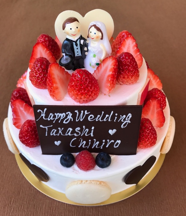 プレートには、お名前お入れいたします。 下18cmのケーキに上12cmのショートケーキがのっています。 その他、ご希望に応じたケーキお作りいたします。