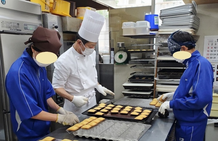 窓ふき、掃除、洗い物から始まり、焼菓子のお手伝いや袋詰め、卵をたくさん割ったりと