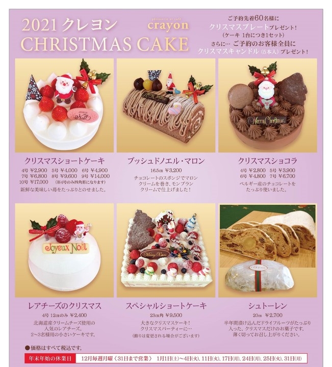 クリスマスケーキご予約受付開始しました。