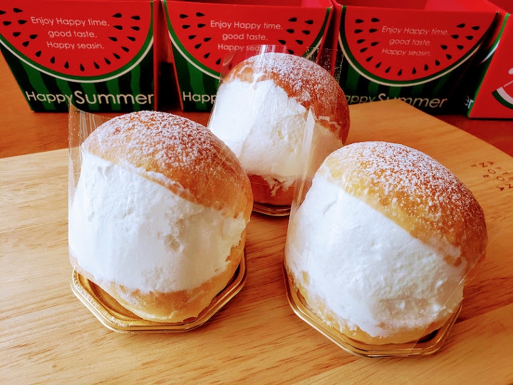 ブリオッシュパンにクレヨンのおいしい生クリームが入っています。