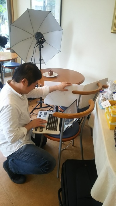 お料理のお届けをするfine DIne でクレヨンのケーキもお届け出来るようになりました。ページ用の写真のカメラマンによる撮影です。