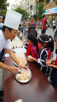今年も、子供神輿を担いだお子さんたちにシュークリームを接待しました!