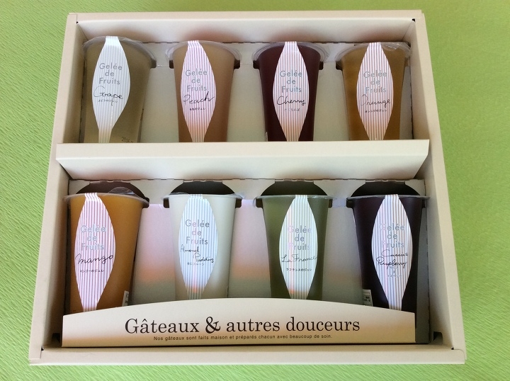 今年のゼリーは、スタイリッシュな形で、果肉も入り、全部で8種類。