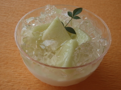つるんとした触感のココナツと、白ワインのゼリーとメロンと合わせとっても口当たりのいい涼しい一品です♪*:。(卵不使用です)
