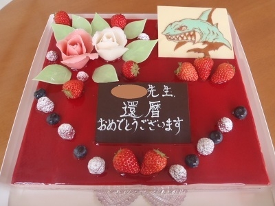 バラもついてとっても華やかなケーキに仕上がりました?(^o^)/