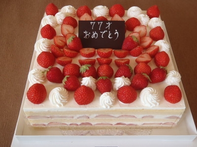 写真は、ご予約の喜寿のお祝いの大きなケーキです!