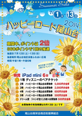 7月1日(火)から13日(日)までハッピーロード尾山台は、サマーセールで尾山台ポイント2倍のプレゼントになります?(^o^)/