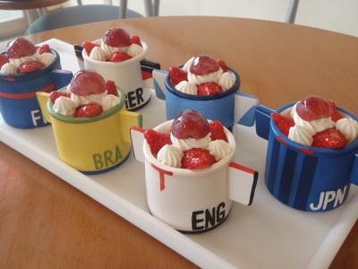 ワールドカップ間近、6か国のユニホーム柄のプリンアラモードが出来ました!日本・ブラジル・イギリス・フランス・ドイツ・アルゼンチンの6か国です。どの国がいいかリクエストしてください。限定商品です。お早目に(^_^)v