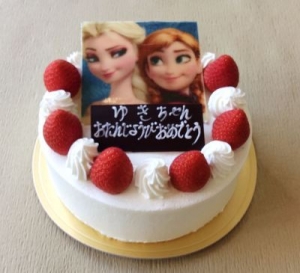 キャラクタープレート付きのケーキ