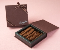 オレンジピールのシロップ漬けにチョコレートをかけたさっぱりしたチョコレートです。