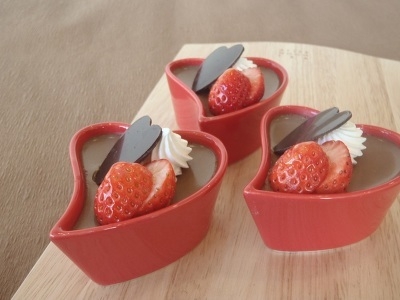 バレンタインが近くなり、ハートのかわいい器に入ったチョコプリン、『バレンタイン』が出来ました!