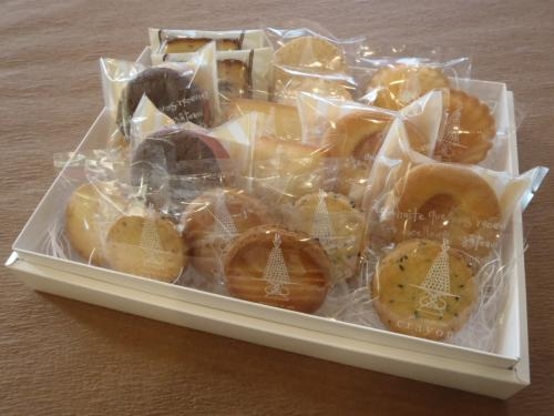 フリアン2枚・ガレット2枚・マドレーヌ2枚・ゴマサブレ2枚・ゴーダチーズ2枚・ダックワーズ2枚・フルーツケーキ2枚・クラシックショコラ2枚・杏2枚