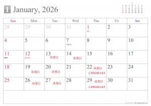 2月の休業日